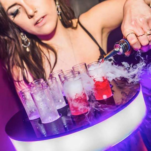These dry ice vapour shot glasses are designed so that dry ice is held in a separate compartment from the alcohol which enables it to be drank whilst still bubbling.