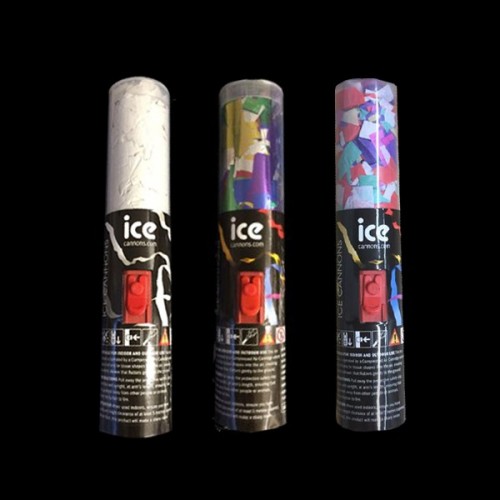 Our Ice Cannons are specially designed confetti cannons, produced to add that dramatic yet magical touch to any celebration. Powered by a compressed air cartridge that when exploded, ejects a swirling shower of multicoloured foil into the air, creating a confetti cloud that gently flutters to the ground. All our Ice Cannons (Confetti Cannons, Party Cannons) come with the following as standard: