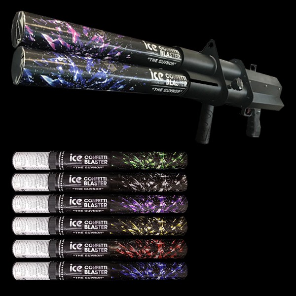 1 case of 25 Confetti Blaster Cartridges (Tissue Paper). This product is an electronically fired confetti cartridge and can only be used with the Confetti Blaster "THE GUVNOR"