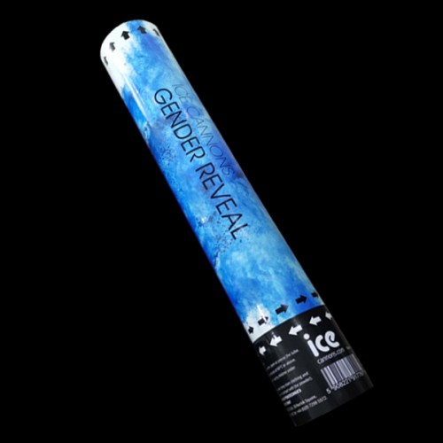 1 Gender Reveal BOY Powder Cannon. This product is 30cm long and contains blue powder that when ejected fills the sky with non-toxic coloured smoke.