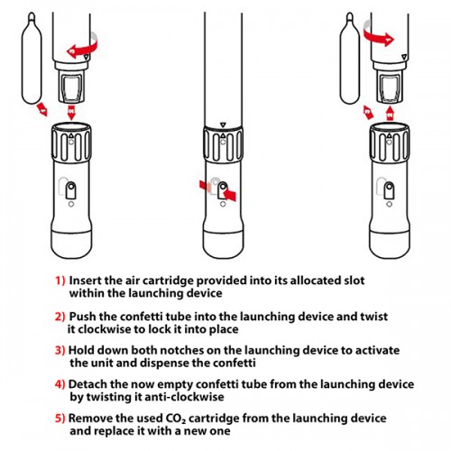 1 case of 20 (10 packets of 2) giant confetti cannons. Ideal for use both indoors and outdoors. Perfect for that special climax at any event. Product must be used along with Giant Confetti Cannon Launcher. Each cartridge measures 60cm and when attached to the launcher becomes a 70cm cannon.