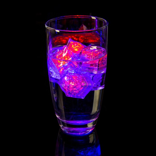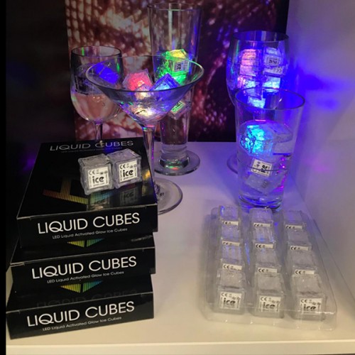 Tray of 12 Liquid Activated LED Glow Ice Cubes. The liquid activated cubes have one lighting mode which changes colour continuously from green to blue to red. To activate the LED Glow Cubes, simply drop into a glass full of liquid. This Product measures 2.54cm x 2.67cm and lasts between 8-10 hours.
