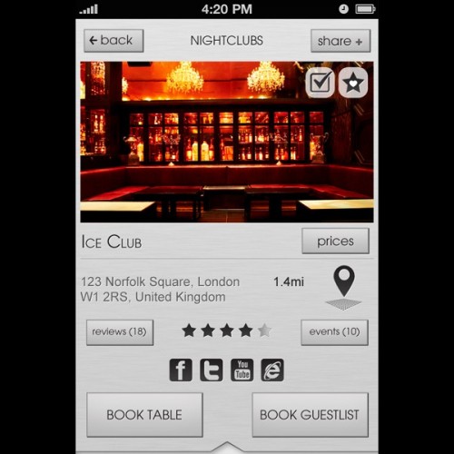 The Ice App is a brand new nightlife app that enables you to organise every aspect of your night out at the touch of a button. Available across all mobile phone platforms (iPhone, iPad, Android, Windows Mobile and Blackberry), you now have your own portable concierge service where you can pre-book everything from tables and guestlists (at nightclubs) to hotel reservations and even your taxi ride home.