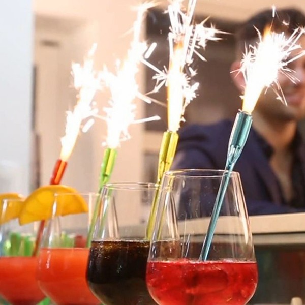 This simple but yet revolutionary product will change the way you serve cocktails. The Happy Hour Festa sticks will eject a sparkling flame effect for close to 25 seconds attracting interest and attention to the served cocktail. The 7 inch plastic stirrer stick can be inserted into the glass or sharer bowel to create that fun party atmosphere whatever the occasion. Refills are sold separately and have a one time use.